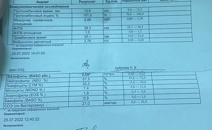 В жк взяли анализы перед операцией .(операция cin2 )
