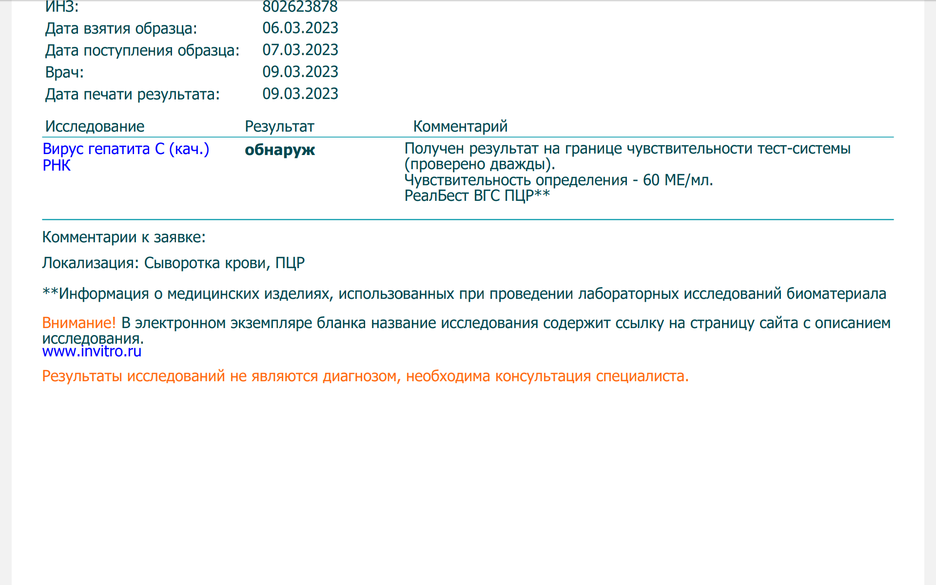 Сдай в другой лабе. У Инвитро заело. Там давно минус