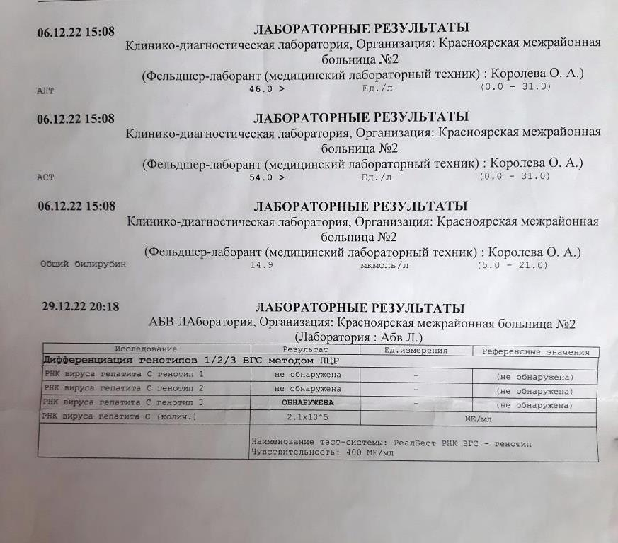 Всем здравствуйте. Гепатит С (3) обнаружили в конце 2022г, когда сдавала анализы перед операцией. Наградили им в медучреждении, предположительно, около 10 лет назад. Инфекционист в поликлинике сказала соблюдать диету, принимать гепатопротекторы и лечиться самостоятельно, в течение 12 недель, препаратами по выбору: соф/дак, соф/вел, соф/лед. Посмотрела я в интернете цену на эпклюзу и решила, что при моём образе жизни (соблюдаю диету, не злоупотребляю, не курю), я смогу ещё несколько лет прожить и без ПВТ. В поисках информации наткнулась на этот форум. Не скажу, что я его изучила вдоль и поперёк, но на многие свои вопросы ответы я нашла именно здесь. Решила, что выплачу кредит за дачу, и сразу же начну копить на ПВТ. Моя логика: если в аптеке 3 упаковки эпклюзы будут стоить 420-450тыс.руб., то здесь, на форуме, я смогу заказать препарат по цене раза в 3 меньше.... За 2023 год съела 2 кг расторопши, выпила несколько упаковок эссенциале форте н, а так же делала инъекции циклоферона.