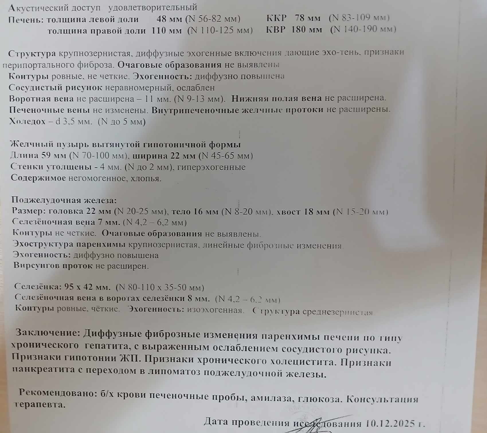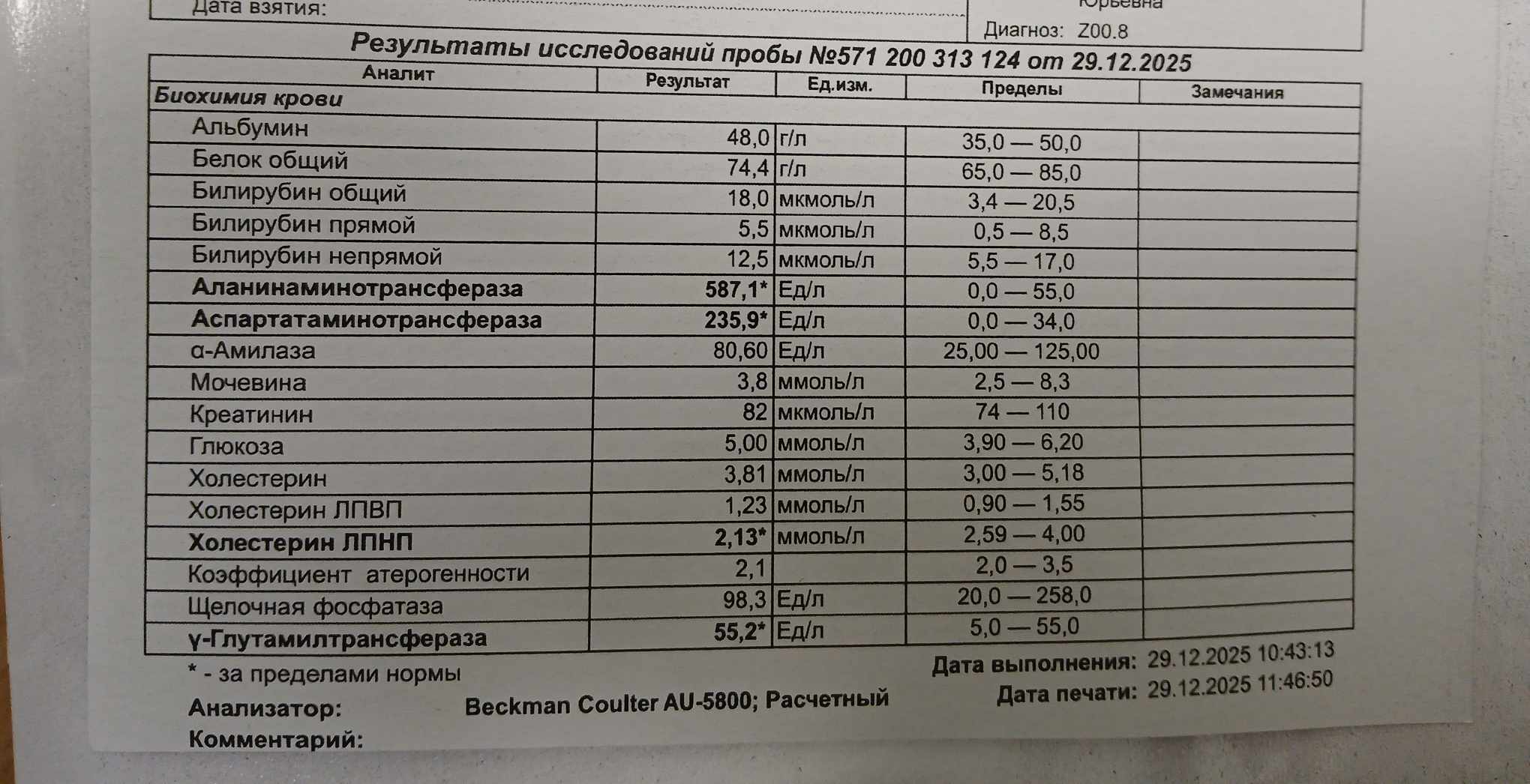 Так с сентября и мучаюсь. Пью Гептрал по 800 ,Урсосаны. Фосфоглив. Алт Аст Скачут каждые 2 недели. !!!В очередь на лечение ставить не хотят ссылаются на то что у меня Острый период с поздней релакволесценции который будет длится 6 месяцов. В очередь Только после сдачи ПЦР в Марте 2026г. Сегодня забрал анализы опять Алт Аст высокие(((( При этом гептрал и фосфоглив не прекращался((( В очередь не ставят! В больницу не кладут с высокими. Не знаю что делать. Заранее всем спасибо. С наступающим всех.